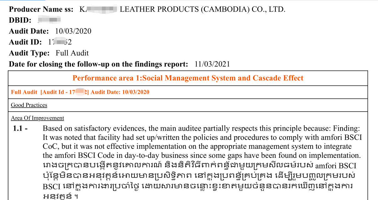 2020年KAI NENG LEATHER PRODUCTS (CAMBODIA) CO.,LTD佳寧皮具制品(柬埔寨)有限公司經(jīng)過層層篩選,選擇驗廠之家--深圳創(chuàng)思維達成戰(zhàn)略合作,攜手創(chuàng)思維,共同開辟新的未來---順利通過BSCI驗廠。