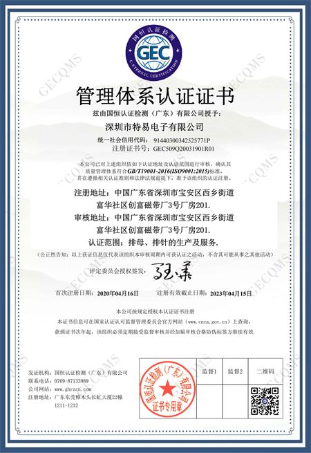 祝深圳市特易電子有限公司在創(chuàng)思維驗廠網(wǎng)輔導(dǎo)下順利通過ISO9001管理體系認(rèn)證