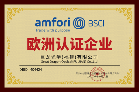 巨龍光學(xué)有限公司始終堅持“真誠、雙贏、創(chuàng)新敬業(yè)”的經(jīng)營理念,率先獲得眼鏡企業(yè)生產(chǎn)許可證,并通過ISO9000質(zhì)量體系認證和CE認證。
