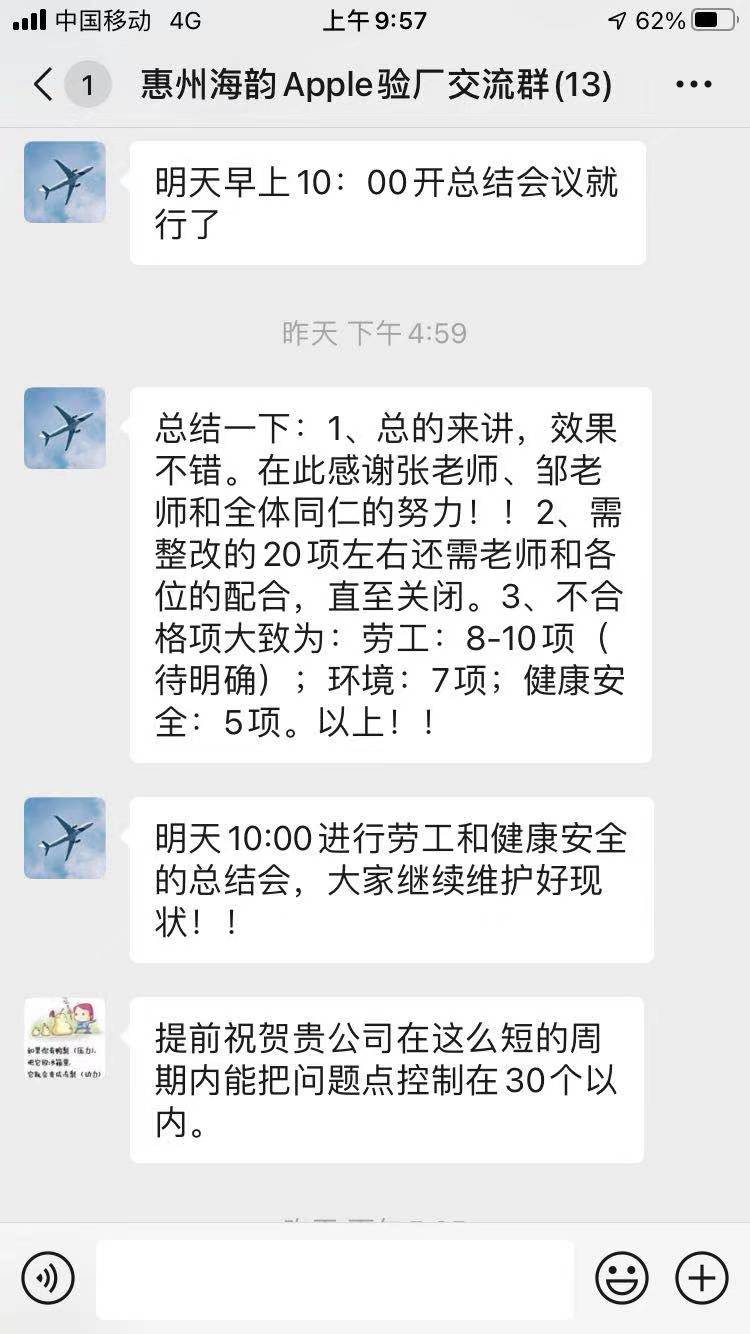 2021年在深圳創思維輔導中順利通過Apple蘋果驗廠第一階段審核,未來可期。