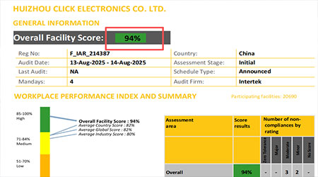 中強(qiáng)集團(tuán) 揚(yáng)郡光電(廣州)有限公司 順利通過(guò)TUV RBA認(rèn)證并取得189.7的好成績(jī)!